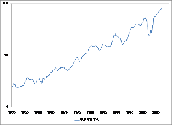 Adjusting P/E Ratios for the Profit Cycle The growing gap between traditional P/E ratios and P/Es adjusted for the profits cycle "In former times analysts and investors paid considerable attention to the average earnings over a fairly long period in the past - usually from seven to ten years. This average figure was useful for ironing out the frequent ups and downs of the business cycle, and it was thought to give a better idea of the company's earning power than the results of the latest year alone." Even though Ben Graham was writing about the analysis of individual companies, it seems logical that the same process should be applied to an index of companies. Are the index profits earned over the most recent 12 months a true measure of the earnings power of the index? Or are the average earnings - earned throughout the ups and downs of the business cycle - a better measure? Arriving at the true measure of earnings power is important, Graham counsels, because that's the figure to use when calculating a proper P/E ratio. The answers to these questions are more important today than at any time in at least 60 years. That's because the difference between the P/E ratio based on trailing earnings and the P/E ratio based on average earnings is wider than at any time during this period. There are two other reasons that make the question timely. The first is that this earnings cycle is one of the longest on record. If we count a profit cycle from the point that year-over-year earnings growth turns positive to when it first turns negative, this is the third-longest cycle since 1950. The longest cycle took place during the mid to late 90's, lasting 5 ½ years. A cycle of 4 ¾ years ended in 1981. The current cycle is just 3 months shy of that record. But that also makes the current cycle more than twice as long as the average cycle of just over 2 years. You can see the extent of this uninterrupted expansion in the chart below which graphs the S&P 500 earnings since 1950.