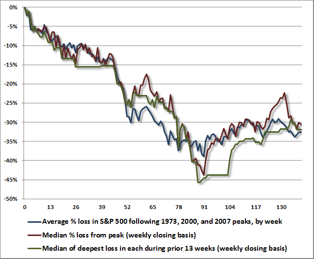The road to current extremes has been as challenging for investors who understand valuation and financial history as it has been glorious for investors who do not. I’ve tried to be very open about my own stumble in the half-cycle since 2009, when my insistence on stress-testing our methods of classifying market return/risk profiles against Depression-era data (following a financial collapse that we fully anticipated) produced an initial miss and additional knock-on effects that we finally resolved in mid-2014. The central problem was that in prior cycles across history, the emergence of a syndrome of extreme overvalued, overbought, overbullish conditions was typically either accompanied or closely followed by a deterioration in market internals, so the methods that came out of our stress testing encouraged us to take a hard-defensive stance immediately. The one thing that quantitative easing did to make the recent half-cycle legitimately “different” from history was that the Fed intentionally encouraged continued yield-seeking speculation even after those syndromes emerged. Since 2009, it has only been when market internals actually deteriorated (e.g. 2011) that stocks have followed by losing ground. Still, the main benefit of a stumble is to learn the right lesson. The central lesson of the half-cycle advance since 2009 is not that Fed easing creates a “put option” for the market. We know from history – even from the two market collapses since 2000 – that this simply isn’t true. Rather, the central lesson is that in the face of intentional Fed-driven yield-seeking speculation, one had to wait until market internals actually deteriorated before taking a hard-defensive outlook. Pre-emptive action on the basis of even the most extreme overvalued, overbought, overbullish conditions was ineffective, in hindsight. A century of evidence validates this lesson: what distinguishes an overvalued market that continues higher from an overvalued market that collapses is the attitude of investors toward risk; and the most reliable measure of investor risk-attitudes is the behavior of market internals. In mid-2014, we imposed the requirement that market internals or credit spreads must actually deteriorate in order to establish a hard-defensive market outlook. That adaptation restored the same features that were responsible for our long success prior to that 2009 stress-testing decision. In contrast, we see no evidence at all that investors have learned a thing from the two 50% market collapses since 2000, and it’s not at all clear that they’ve learned a thing from other collapses across history either. If they did, investors would recognize that compared with most of the bull market period since 2009, market internals no longer convey risk-seeking preferences among investors. Again, when investors are risk-seeking, as conveyed by the behavior of market internals, overvalued markets simply tend to become more overvalued. When internals break down following a period of overvalued, overbought, overbullish conditions, those same markets have become vulnerable to deep collapses. Market internals are equally important on the downside. The legendary value investor Benjamin Graham lost 65% of his assets during the market collapse of the Great Depression, even after stocks had retreated to historically reasonable valuations, while economist John Maynard Keynes was devastated during the same period as a result of buying stocks on margin (an overuse of leverage that prompted his famous observation “the market can remain irrational longer than you can stay solvent”). By our analysis, both Graham and Keynes could have avoided those stumbles had they recognized the dismal state of market internals at the time, rather than acting on the basis of valuation alone. Compared with post-war data, one needed very robust measures of market internals during the Depression to avoid interim losses, even after valuations became favorable. The same lesson was true in late-October 2008. Fools are content to criticize the stumbles of others. The wise make an effort to learn from them. When market internals are uniformly favorable, “buy the dip” is often a reliable strategy, because even extremely overvalued markets tend to be resilient provided that investors are strongly inclined toward risk-seeking. When market internals have deteriorated, it’s a signal that investors are shifting toward greater selectivity and risk aversion. You’ll still find bulls, of course – there has to be a buyer for every stock that is sold – and one can rely on the talking heads of financial television to be most arrogant toward skeptics at the very top of the market. But examine periods where overvaluation has been met by deterioration in market internals, and you’ll repeatedly find that persisting in a “buy the dip” mentality leads speculators to accumulate the very stock that the smarter money is getting rid of before a crash. While our measures of market internals include a rich breadth of considerations, the essential feature is to capture the behavior of numerous individual stocks, industries, sectors and security types. When investors are risk-seeking, they tend to be risk-seeking in everything, so increased selectivity is a warning sign. Currently, fewer than half of all stocks are above their 200-day moving averages, for example. Last week, I shared Bill Hester’s observation that when weak participation has been accompanied by rich valuations, scarce bearish sentiment, and recent market highs, the number of instances narrow to some of the worst points in history to invest. I noted in last week’s comment that it’s rare for the S&P 500 to register a new high when more than 40% of its components are already in a downtrend. When weak participation, rich valuations and scarce bearish sentiment accompanied a record high in the same week, the handful of instances diminish to surround the precise market hi